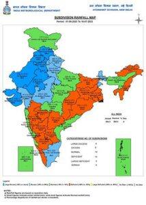 - Central India: Actual 335.7 mm against the average of 326.8 mm, +3 per cent departure from normal.
