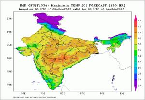 Anti-cyclonic circulation visible in the weather chart over west - central India[/caption] During the period of 12 to 15 April hot weather is expected across Punjab, Haryana, Delhi NCR, Uttar Pradesh with maximum temperatures in the range of 38 to 41°c while as high as 42 to 43°c in Bihar, Jharkhand, Odisha, Chhattisgarh, Telangana, West Bengal and Vidarbha region of Maharashtra. Delhi NCR is likely to touch 40°c by 13 to 15 April. Season’s first heatwave conditions are very likely to develop in parts of Jharkhand, Bihar, Odisha, Chhattisgarh, Vidarbha by 15 April. [caption id=“attachment_12432902” align=“alignnone” width=“555”]