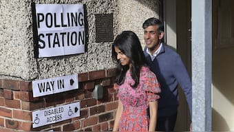 Prime Minister Rishi Sunak and his wife Akshata Murty head to a polling station in the UK's northern English constituency of Richmond and Northallerton to cast their votes in the general elections held on July 4. This is going to be a high-stakes election for the Sunak-led Conservative Party as they are predicted to lose power after 14 years. AFP