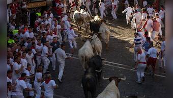 On each day of the festival six bulls are released at 8:00 a.m. (0600 GMT) to run from their corral through the narrow, cobbled streets of the old town over an 850-meter (yard) course. AFP.