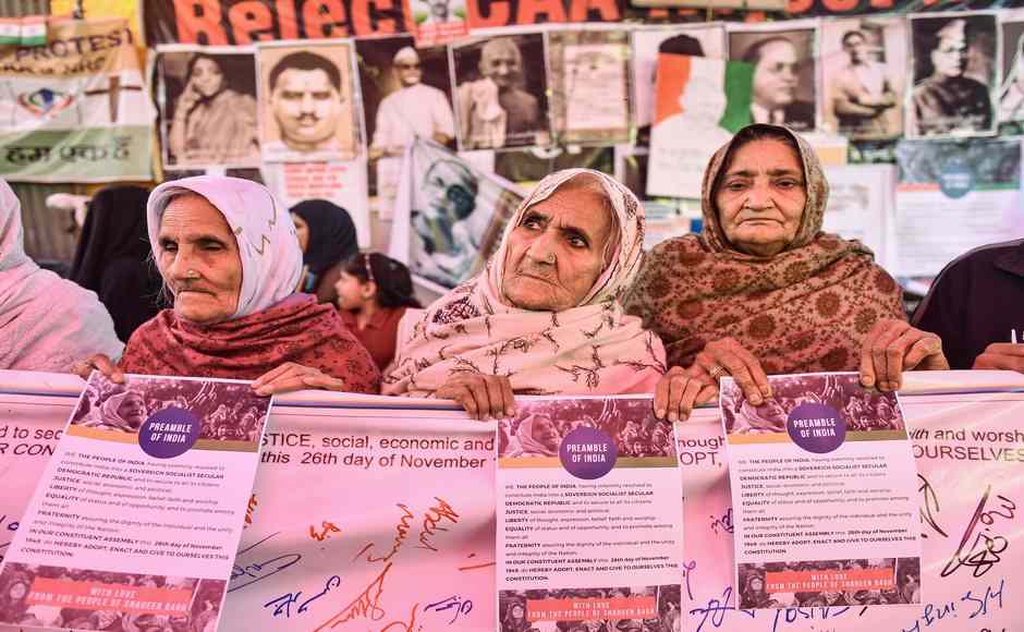 Elderly women during a demonstration against CAA, NRC and NPR at Shaheen Bagh in New Delhi on Saturday. The Shaheen Bagh protests are an ongoing sit-in peaceful demonstration, led by women, that began with the passage of the CAA in both houses of Parliament on 11 December, 2019. PTI