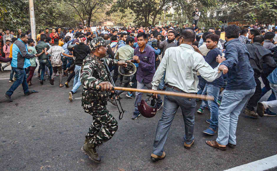Agitators engaged in scuffle with security forces near the Secretariat and Assembly buildings in Assam when they were prevented from moving forward, police sources said. In Dibrugarh district, bandh supporters clashed with CISF personnel. PTI