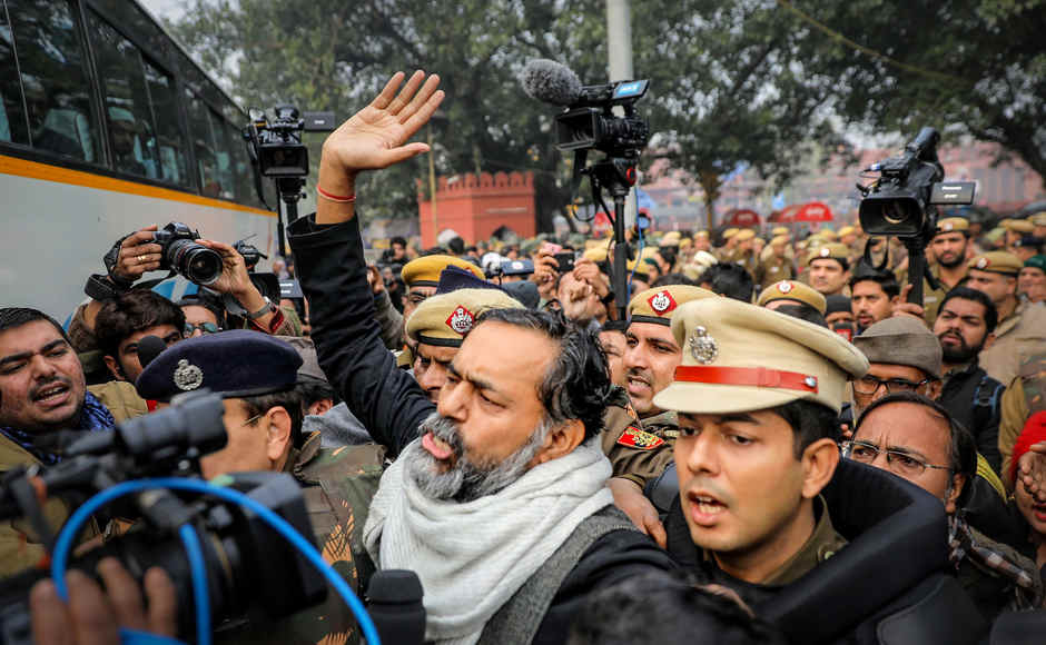cores of protestors were detained by the Delhi Police near Red Fort when they tried to take out a march to protest the Citizenship (Amendment) Act in defiance of the prohibitory orders imposed there. Swarajya Abhiyan chief Yogendra Yadav, former JNU student Umar Khalid and ex-JNUSU president N Sai Balaji were among those who were detained, officials said. PTI
