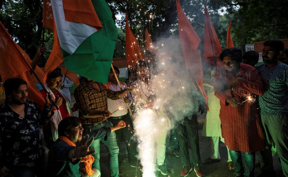 Activists of the RSS-affiliated Akhil Bharatiya Vidyarthi Parishad celebrated at Delhi University after the decision and thanked the Central government for it. Reuters