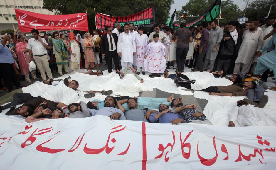 Pakistan also staged protests in solidarity with the people of Kashmir on Monday. Slogans were raised against the Indian government’s decision. The banner reads in Urdu, ‘Martyrs’ blood will not go waste’. Reuters