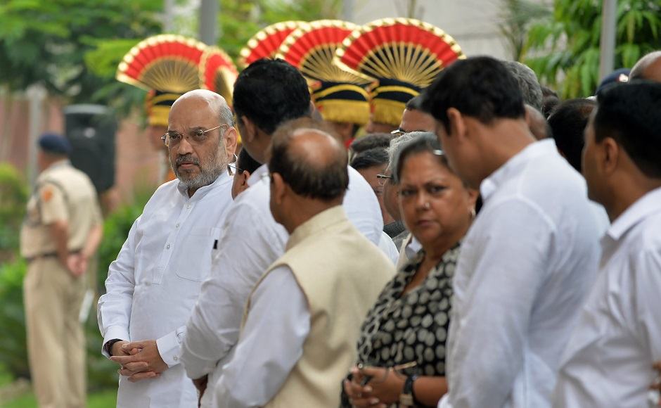 Shah was joined at the BJP headquarters by JP Nadda, Vasundhara Raje, Venkaiah Naidu and other leaders from the BJP as well as other parties. AFP