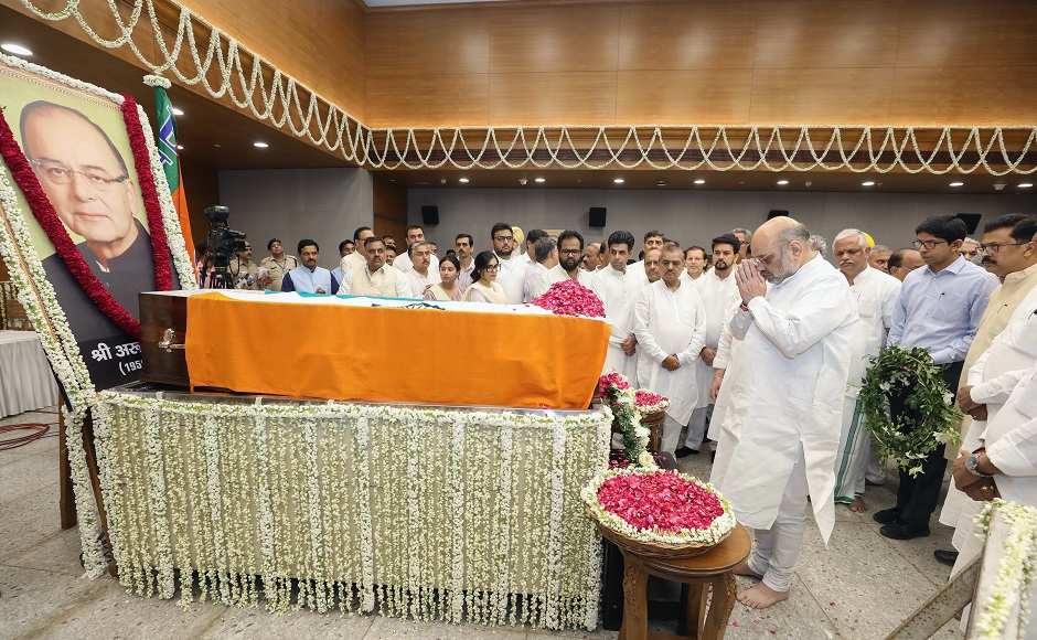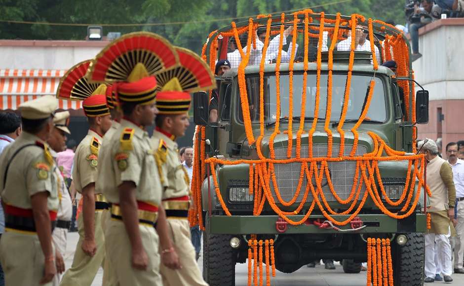 His mortal remains were taken from his residence to the BJP headquarters, where political leaders paid tributes. AP