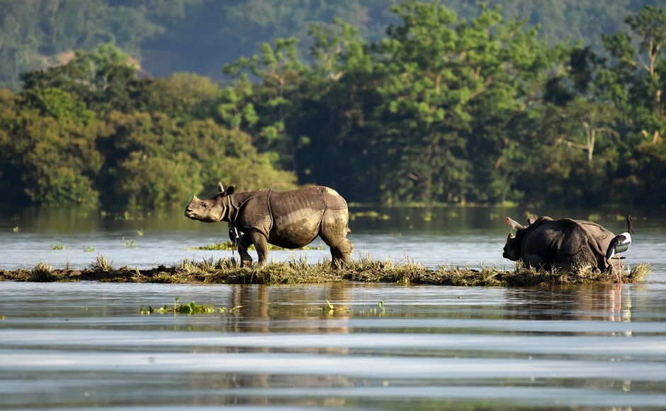 One-horned rhinoceroses at the Kaziranga National Park in upper Assam are seen searching for high ground to survive the floods. Every year, dozens of rhinoceroses are rescued and taken to safety during the monsoon season. According to park authorities, over 70 animals have drowned in the floods in 2017. Reuters