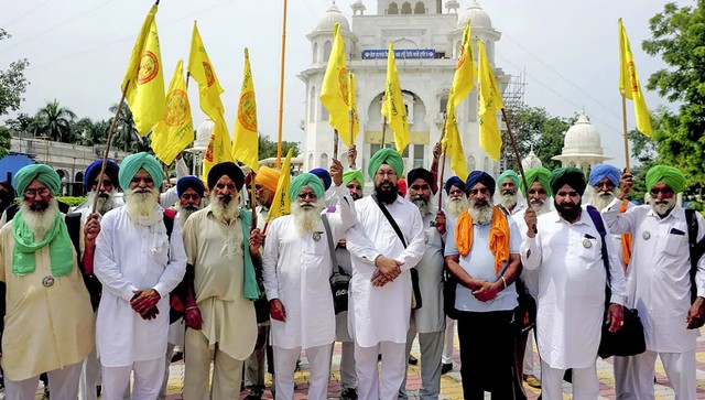 Farmers from Punjab visit the Rakabganj Gurudwara in New Delhi before staging a protest at Jantar Mantar. Monday’s protest comes after the Bhartiya Kisan Union (BKU) spokesperson led a demonstration in Uttar Pradesh’s Lakhimpur Kheri. PTI