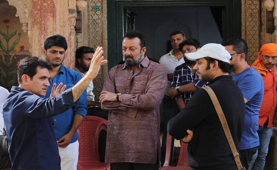 Director Omung Kumar briefs Sanjay Dutt on the sets of his first film since his release from Yerawada Jail