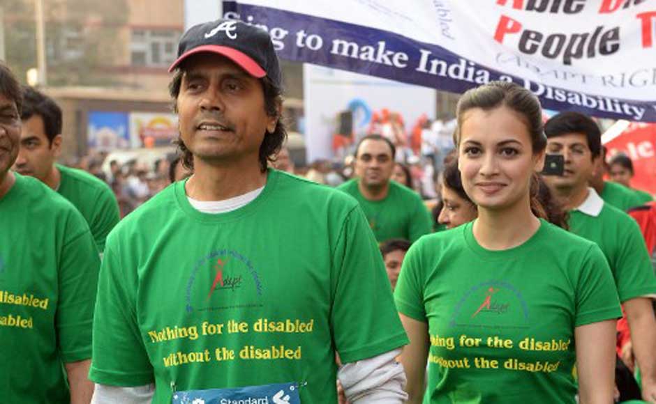 Director Nagesh Kukunoor with actor Dia Mirza also supported those participating in the wheelchair event. AFP