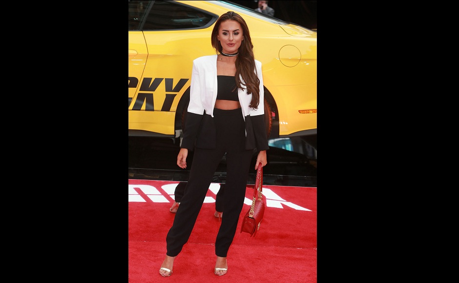 Amber Davies arrives at the Logan Lucky premiere held at Vue West End in London. Image via Getty Images.