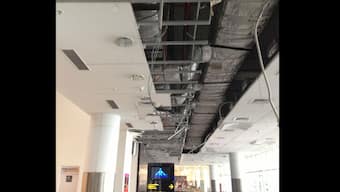 The section of roof that collapsed in the domestic terminal - 40 panels of its false ceiling fell off: Firstpost