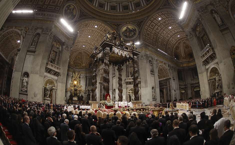 Pope Francis celebrated Christmas Eve Mass in St Peter’s Basilica at the Vatican on 24 December. The pope celebrated a solemn Christmas Eve Mass for thousands of people as others watched on large screen outside. AP