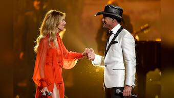 Faith Hill and Tim McGraw perform 'The Rest of Our Life' and mesmerise the audience with their vocals. Image from AP/Chris Pizzello