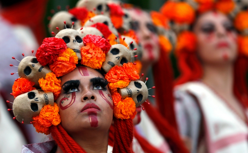 This year’s parade featured a kilometre and a half of floats honouring the celebration, which is an amalgam of pre-Hispanic and other traditions. AP