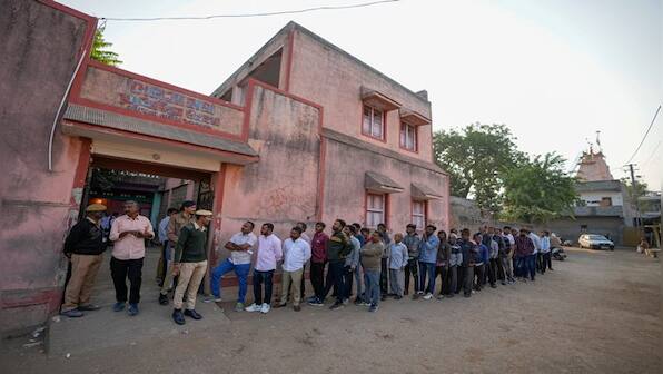 People stand in a queue to cast their votes during the first phase of Gujarat state legislature elections in Limbdi, Gujarat. The first phase of the election was held on Thursday and polling ended at 5 pm recording a voter turnout of 57 per cent, according to the Election Commission. As many as 788 candidates fought for 89 seats in 19 districts. AP