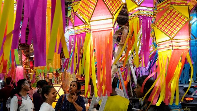 People exchange gifts including sweets on Diwali. Hindus celebrating the festival wear new clothes and worship Goddess Lakshmi and Lord Ganesha on the festival of lights. AP