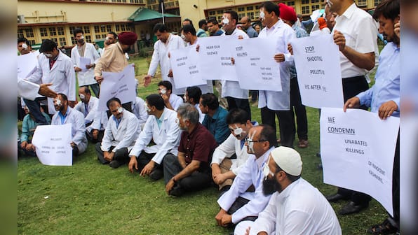Sajad Khanday, another doctor at the protest venue, said that despite concern of the doctors from the Valley and outside, the government has been unable to stop the rampant use of pellet guns, and the hospitals continue to receive patients with pellet injuries from different parts of Kashmir. Sameer Yasir