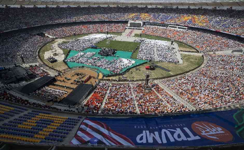 After visiting the Sabarmati Ashram, Trump headed to the Motera cricket stadium for the ‘Namaste Trump event’. The two heads of state were greeted by a packed crowd.