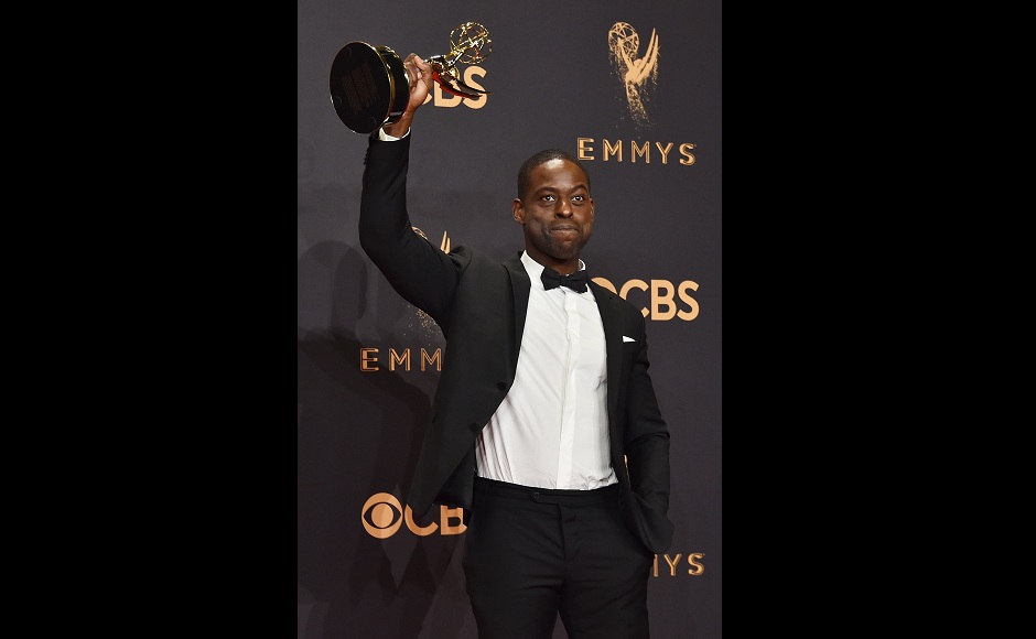 Sterling K. Brown, winner of Outstanding Lead Actor in a Drama Series for This Is Us, strikes a pose in the press room. Image from Getty Images.