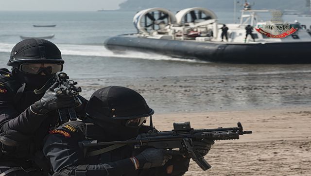 The Omnipresent: An NSG team engages in joint training with the Indian Coast Guard using hovercrafts. NSG commandos are trained extensively with multiple organisations for swift movement through land, air or sea. Image Courtesy: Pravin Talan
