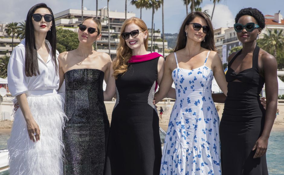 (From L-R) Fan Bingbing, Marion Cotillard, Jessica Chastain, Penelope Cruz and Lupita Nyong’o pose for photographers during a photo call for the film 355 at the 71st international film festival, Cannes. Photo by Vianney Le Caer/Invision/AP