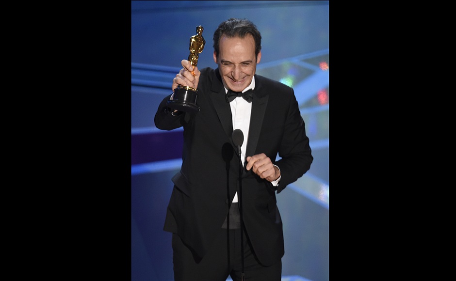 Alexandre Desplat accepts the award for best original score for The Shape of Water at the Oscars. AP/Chris Pizzello