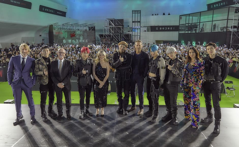 Ryan Reynolds, Adria Arjona, Mélanie Laurent, Ian Bryce, and Michael Bay attend the world premiere of Netflix’s 6 Underground in Seoul