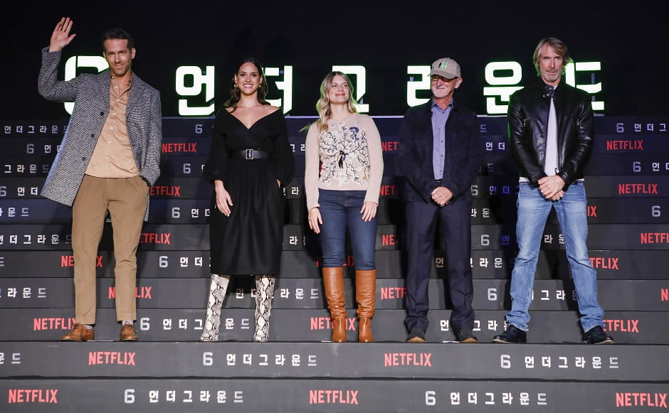 Ryan Reynolds, Adria Arjona, Laurent, Michael Bay attend Netflix's 6 Underground world premiere in Seoul
