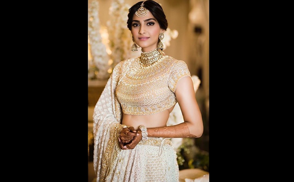 For the second day, which is booked for an extended mehndi cum pre-sangeet ceremony, Sonam Kapoor wears an ethereal white and gold lehenga