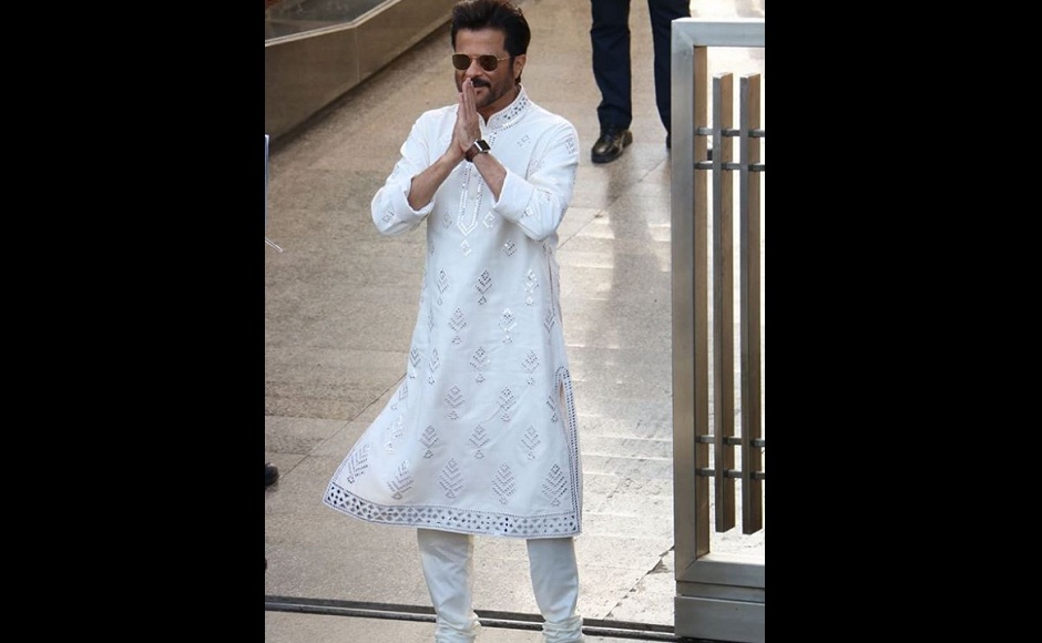Anil Kapoor greets the press just outside his Juhu residence hours before the sangeet. Image from Instagrambollywoodcurrent_insta