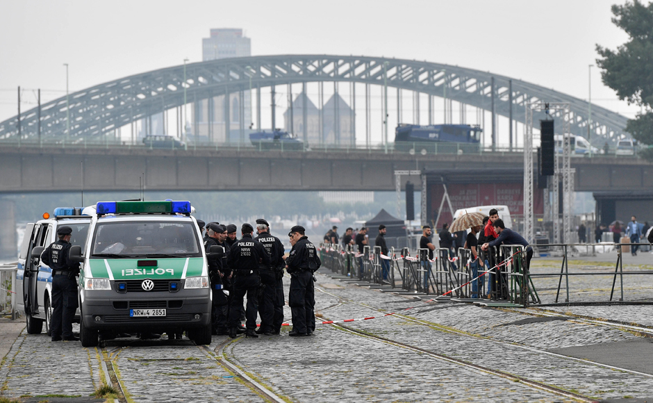Police put 2,700 officers in place to prevent any trouble. Four much smaller counter-protests took place elsewhere in the city, including one by a far-right German group that was kept well away from the Turkish rally. On the other side of River Rhine the Cologne cathedral is visible. AP