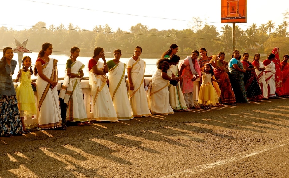On 1 January, women from various walks of life — writers, athletes, actors, politicians and techies, government officials and homemakers — stood across the highways crisscrossing through the 14 districts in the state. Image courtesy Sasi Chandrika @ Kannur