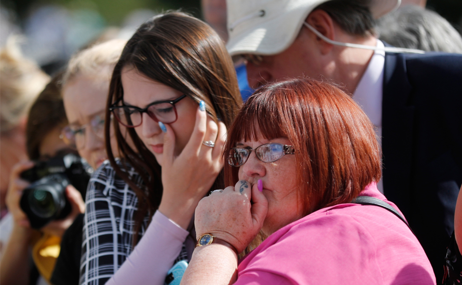 A woman pays tribute to the late Princess Diana above the Pont de l’Alma tunnel in Paris. Even though Diana fell out with the royal family after her divorce, her star status remained undimmed in the public’s eye, with her reputation sealed as a fashion icon, charity campaigner, humanitarian and a self-styled “queen of hearts”. AP