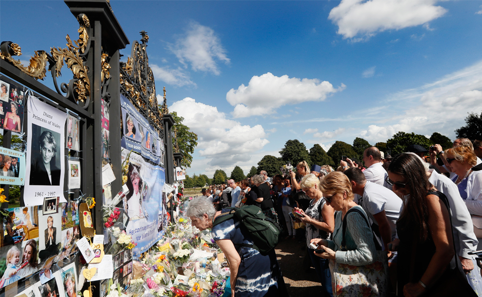 Prince William took flowers from members of the public and placed them amongst the floral and pictorial tributes. The weeks leading up to the anniversary have been filled with television documentaries and newspaper stories reflecting on the princess and her contributions to the country and to the monarchy. AP