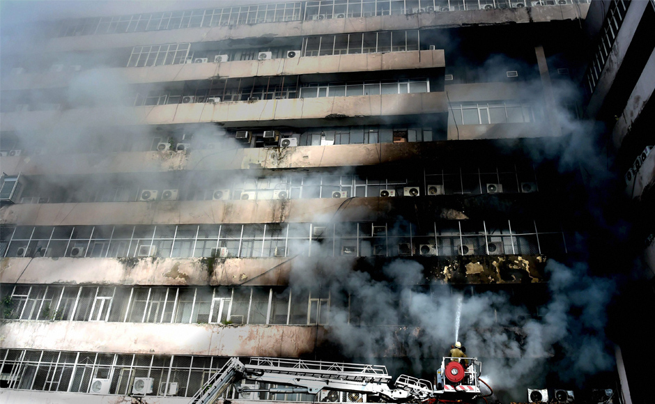 A massive fire broke out in a building in Lok Nayak Bhawan near the upscale Khan Market in New Delhi on Monday afternoon. PTI