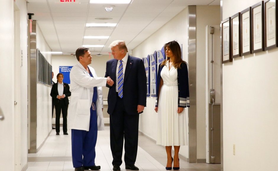 US President Donald Trump and first lady Melania visited Broward Health North hospital on Friday to meet and offer comfort to those wounded in the Florida mass school shooting