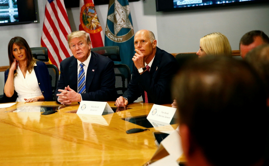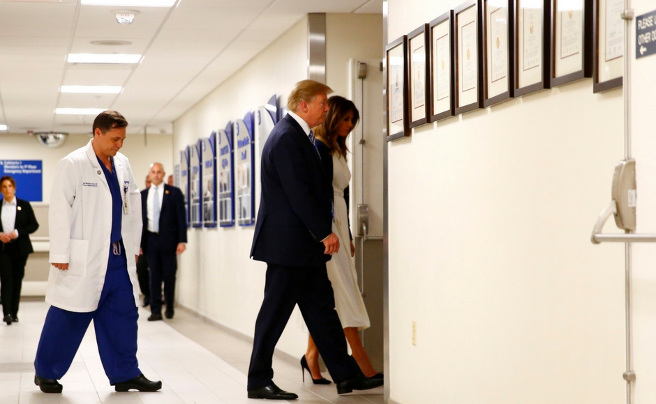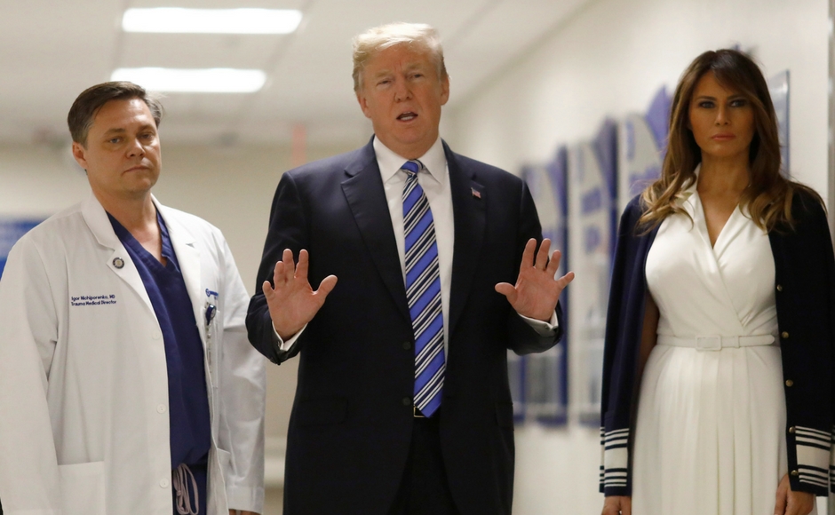 US president Donald Trump and first lady Melania visited Broward Health North hospital on Friday to meet and offer comfort to those wounded in the Florida mass school shooting. Reuters