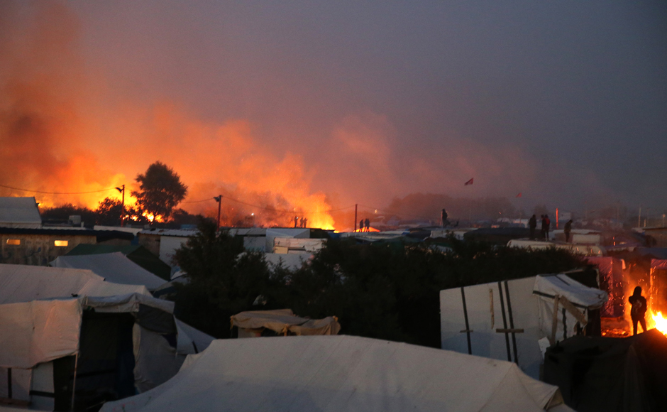 Around 200 minors from the camp have been sent to the United Kingdom in keeping with the “Dubs” amendment to the Immigration Act after the camp was set on fire. The picture shows a partial view of the “Jungle” camp on fire. Photo: AFP