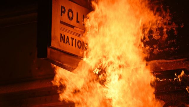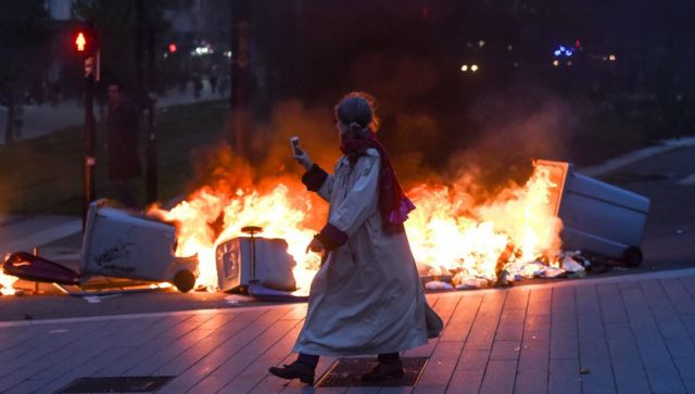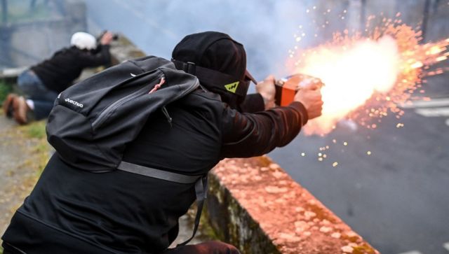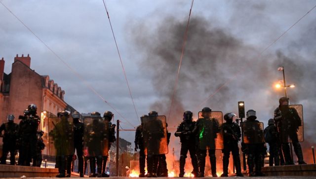 In Nantes, western France, violence broke out at some places as protesters clashed with the police and set waste bins on fire. Anti-riot police officers were deployed in the city, while a protester was seen using fireworks towards them. AFP