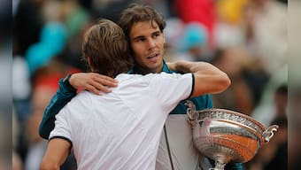 Rafael Nadal hugs compatriot David Ferrer after defeating him in three sets 6-3, 6-2, 6-3, in the final of the French Open tennis tournament, at Roland Garros stadium in Paris. Christophe Ena/Associated Press