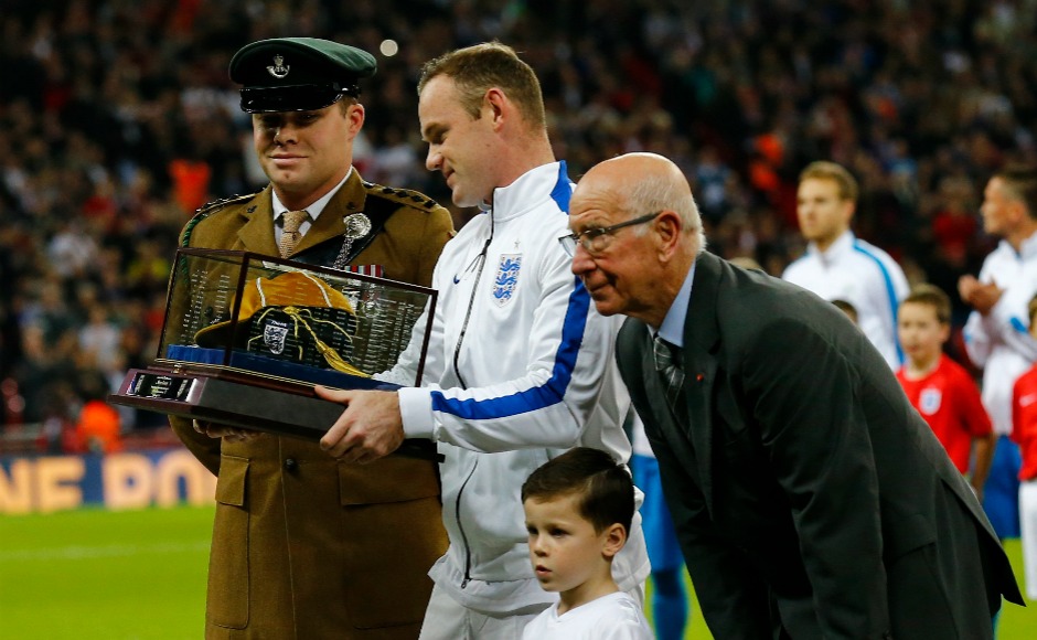 Wayne Rooney poses for a photo after having achieved the milestone of representing England 100 times. He subsequently was awarded by Sir Bobby Charlton for the same. Reuters
