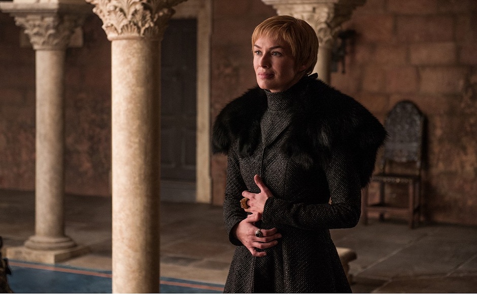 Cersei in episode 5 — Eastwatch — that she is pregnant with Jaime’s child, thus questioning the prophecy that was made way back in season 5 by Maggie the Frog. She is seen clutching her stomach here. Image via HBO.