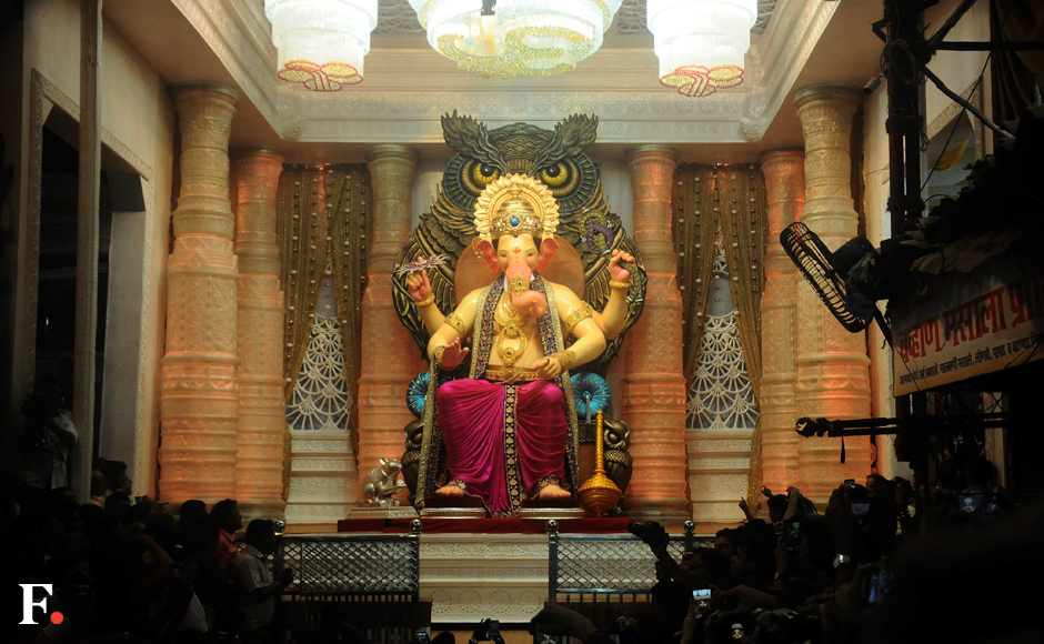 The first look of the idol was revealed on 1 September. About a million people visit the mandal during the eleven day period to catch a glimpse of the idol. Photo: Firstpost/Sachin Gokhale