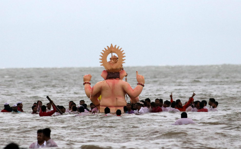 Following processions, Lord Ganesha’s idol is finally immersed in water. Music and group chants are also a part of the ritual, where devotees bid adieu to the deity and hope for his speedy return the next year. Sachin Gokhale/Firstpost