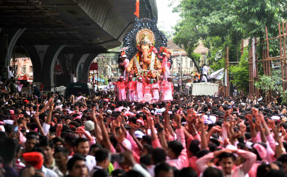 Celebrated on the fourteenth day of the lunar fortnight, Ganeshotsav is concluded seeking blessings of the elephant-headed God. Grand processions can be observed as part of the festival. Sachin Gokhale/Firstpost