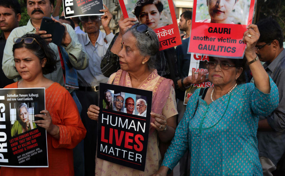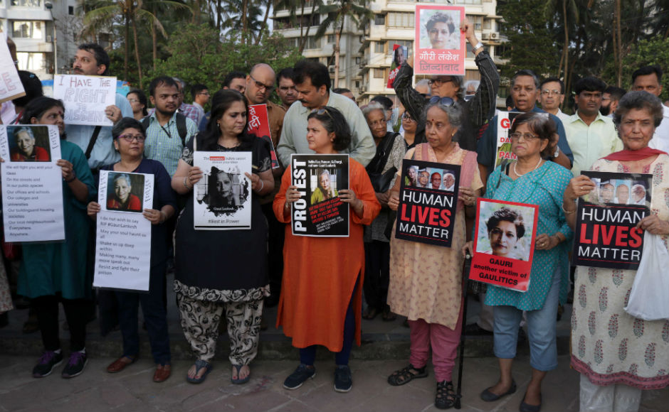 A day after the brutal killing of senior journalist and social activist Gauri Lankesh in Karnataka’s Bengaluru, scores of people took to the streets seeking justice across India on Wednesday. Firstpost/Sachin Gokhale