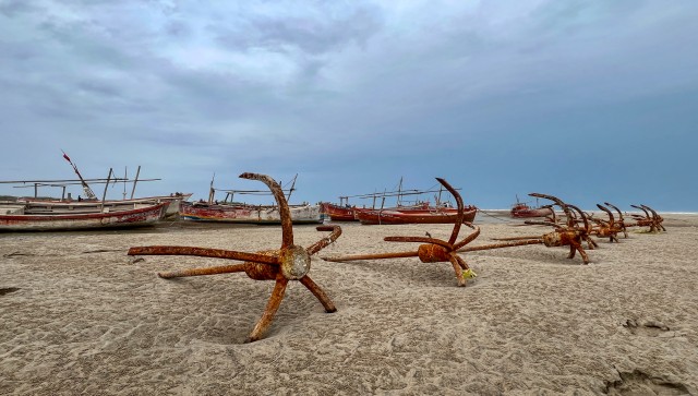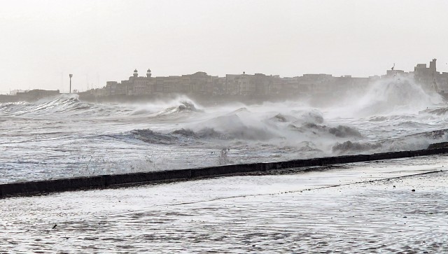 A lifeguard standing guard during a high tide at a deserted Juhu beach on the Arabian Sea coast in Mumbai. Mumbai had high gusts over the weekend, and numerous flights were delayed or cancelled owing to “inclement weather.” Many passengers had to wait for hours on Sunday night as Mumbai airport plunged into “chaos." AP