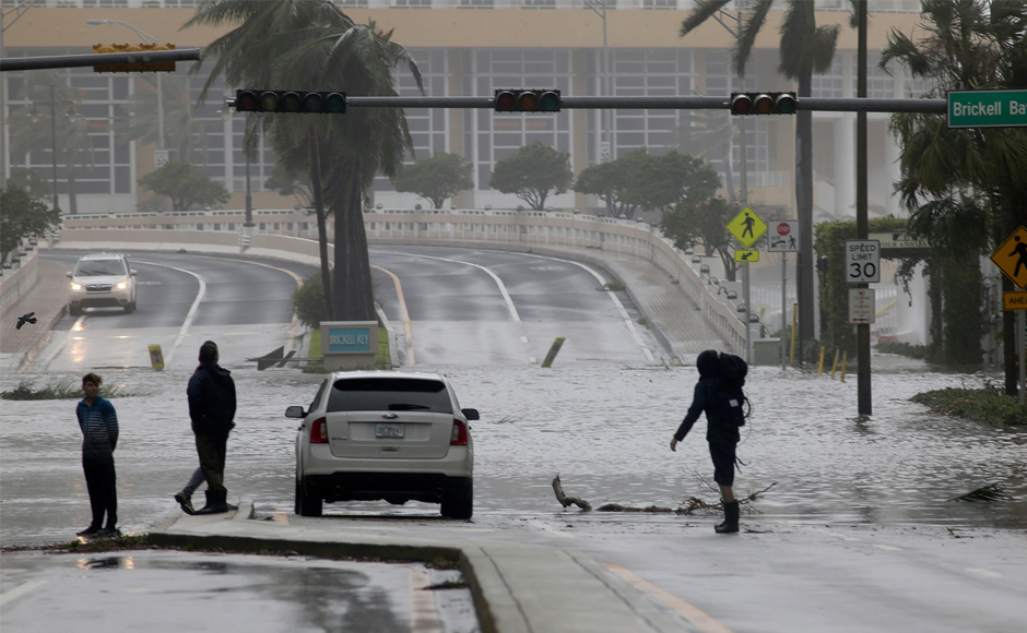 Vehicles are surrounded by water after Hurricane Irma passed through Naples. At 3:35 pm (1935 GMT), the storm made its second Florida landfall, hitting Marco Island near the popular shopping and golf destination of Naples, hours after striking the Keys island chain. AP